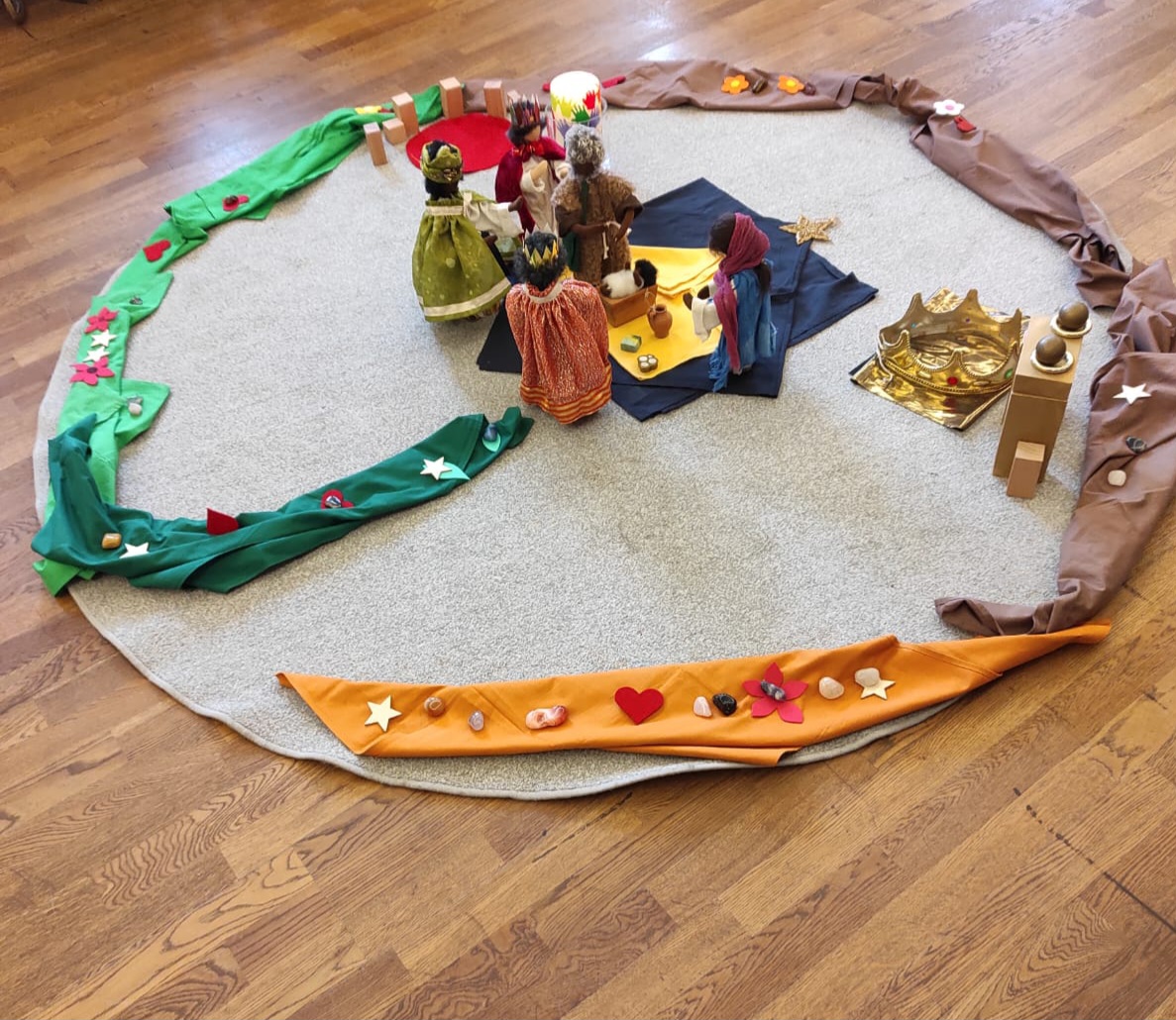 Mit ca. 20 Kindern und einigen Eltern haben wir uns mit den „Drei Weisen aus dem Morgenland“ auf den Weg gemacht – und sind durch eine Wüste, durch Wälder und Wiesen gewandert; wir haben in Jerusalem den König Herodes kennengelernt und sind durch das kleine Städtchen Bethlehem schließlich im Stall außerhalb Bethlehems bei Jesus, Maria und Josef angekommen.